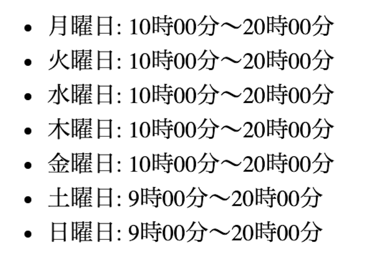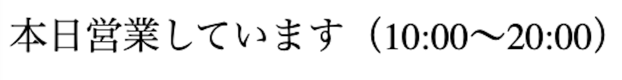 アクセスした日の営業時間を表示します。曜日を頼りに「本日」を決めています。