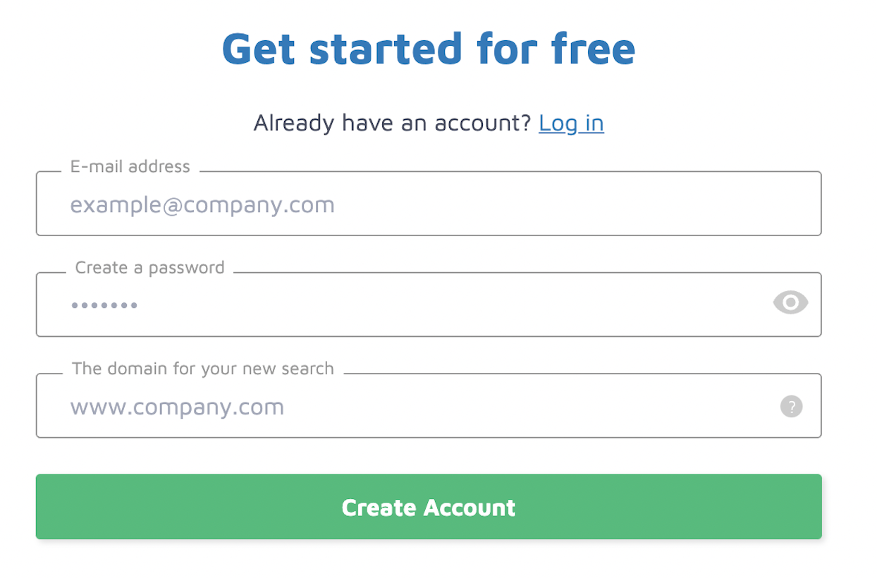 初めて登録する場合は、メールアドレスと、希望するパスワード、検索させたいサイトのURLを入力して、アカウントを作成します。