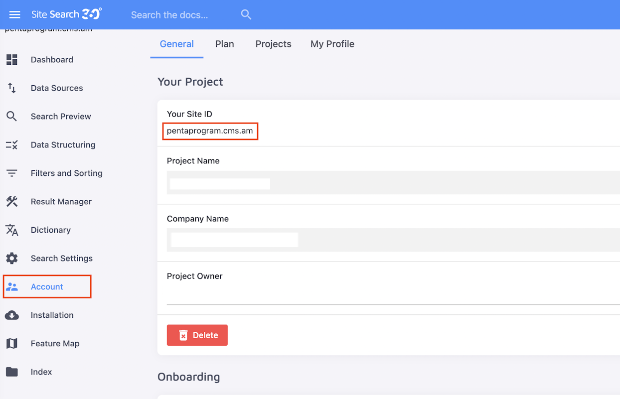 次のステップの設定のために、管理画面のAccountからSite ID を確認しておきます。