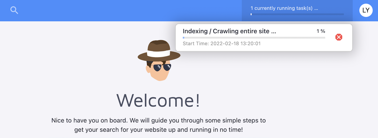 右上の currently running task(s) をクリックするとクロール状況が見られます。