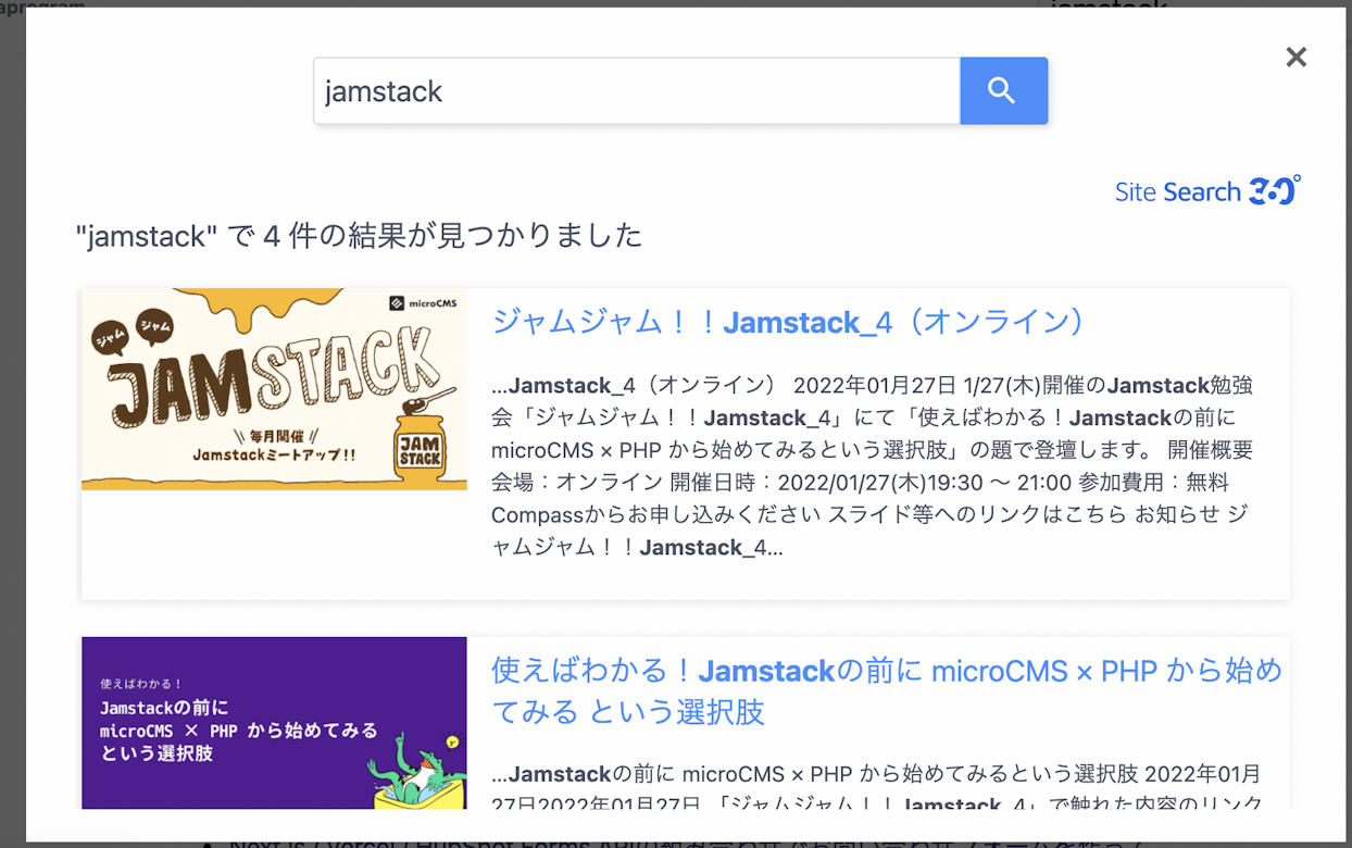 Jamstackサイトへ超簡単にサイト内検索を実装できる、クロール型検索 Site Search 360!